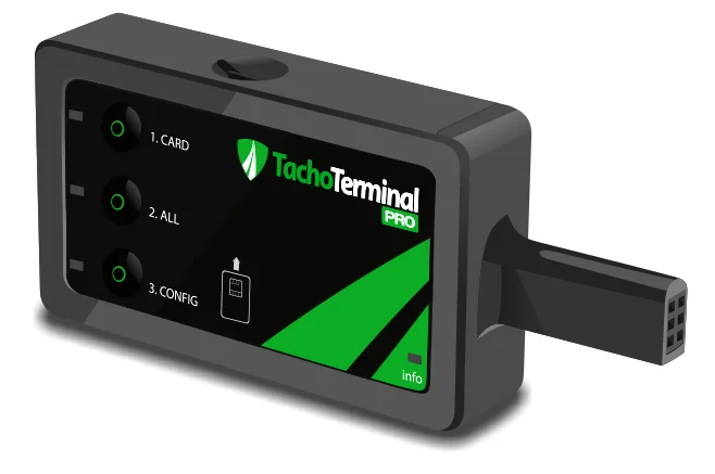 TachoTerminal Pro 2 – é um dispositivo moderno para descarregar dados dos cartões de condutor e do tacógrafo digital, combinando as vantagens das chaves de transferência compactas e dos dispositivos universais.